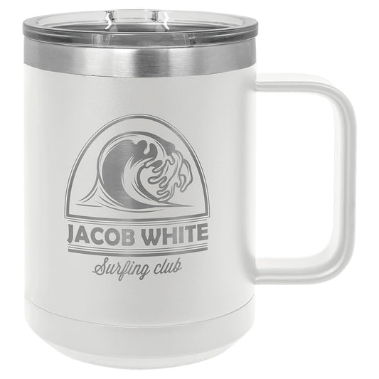 Personalized 15 oz. Stainless Steel Mug – Custom Laser Engraved Polar Camel Insulated Tumbler with Sliding Lid